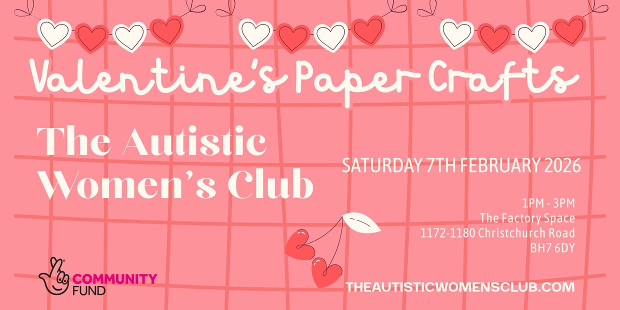 Join us in person for a fun and relaxing afternoon at The Autistic Women's Club Valentine's Paper Crafts event! We'll be getting creative with a Valentine's theme using paper crafts. Whether you've been before or just want to try something new, everyone's welcome! Come hang out, make cool stuff, and find space to be you in a no-pressure environment. Can't wait to see you there!